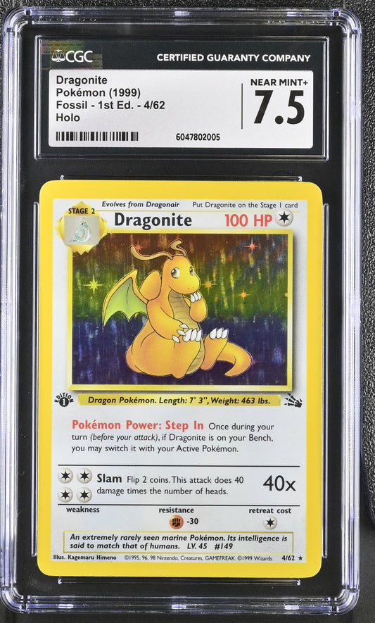 1999 Pokémon Fossil Dragonite Holo #4 – PSA 7 (Near Mint)